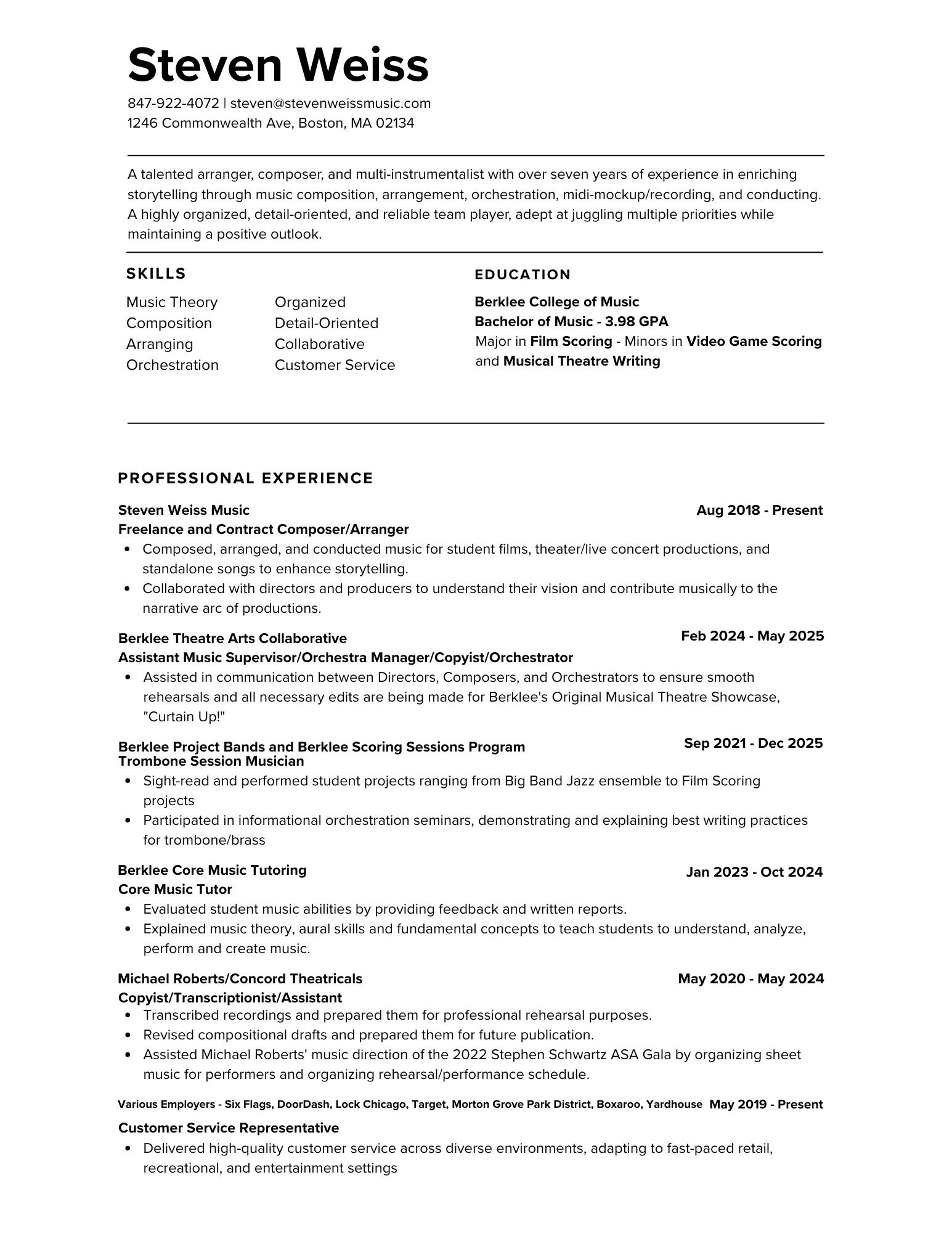 - Orchestrator/Copyist/Music Supervisor